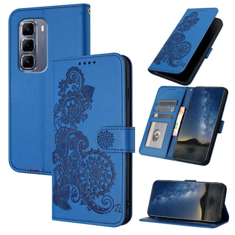 Για Infinix Hot 50 Pro + 4G Datura λουλούδι ανάγλυφο Flip δερμάτινη θήκη τηλεφώνου (μπλε)