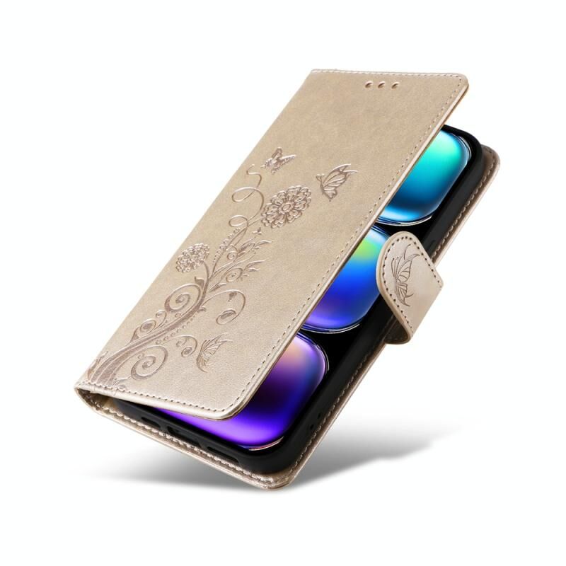 Θήκη τηλεφώνου από δέρμα με ανάγλυφα λουλούδια πεταλούδας για Infinix Hot 50 Pro+ 4G (Μωβ)