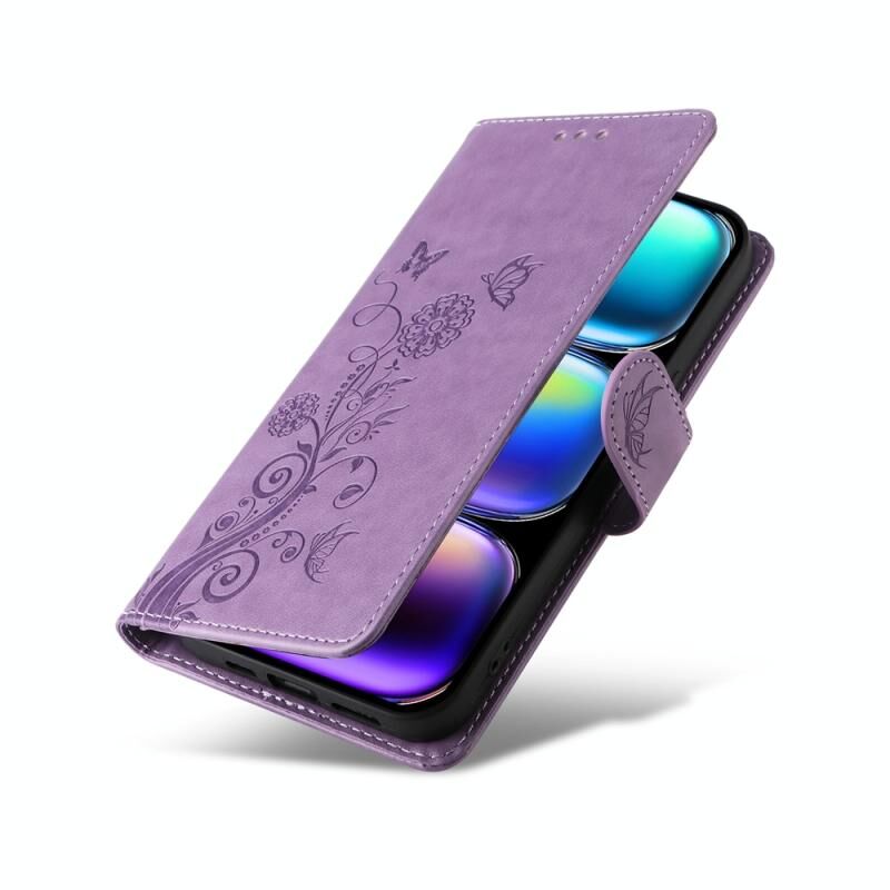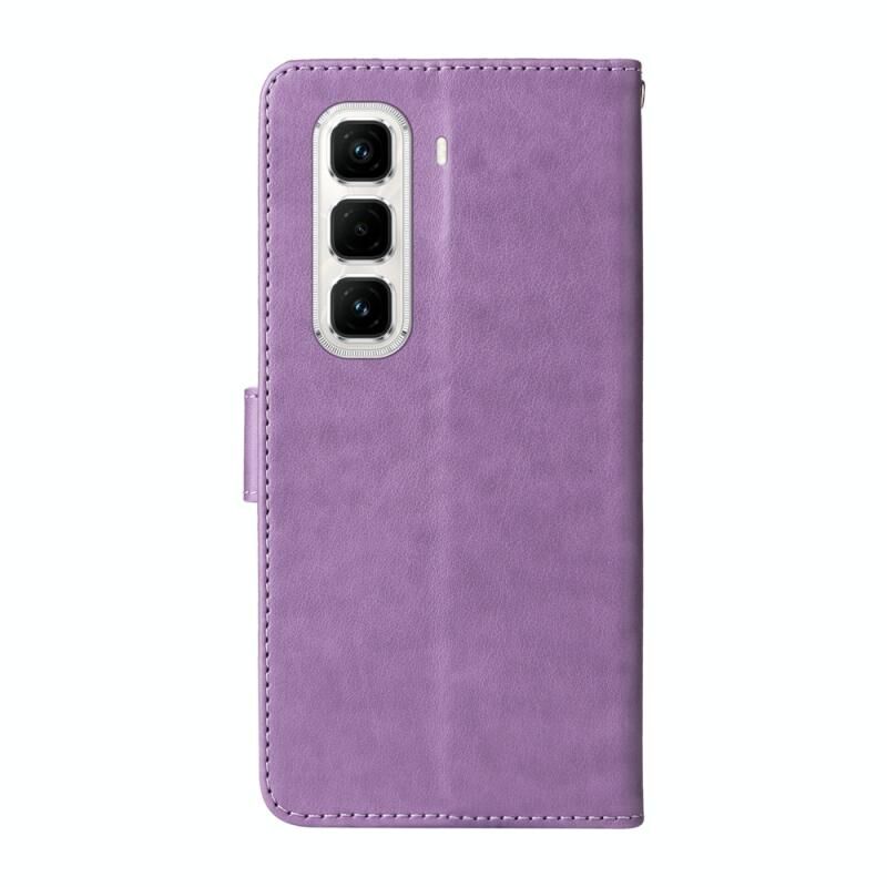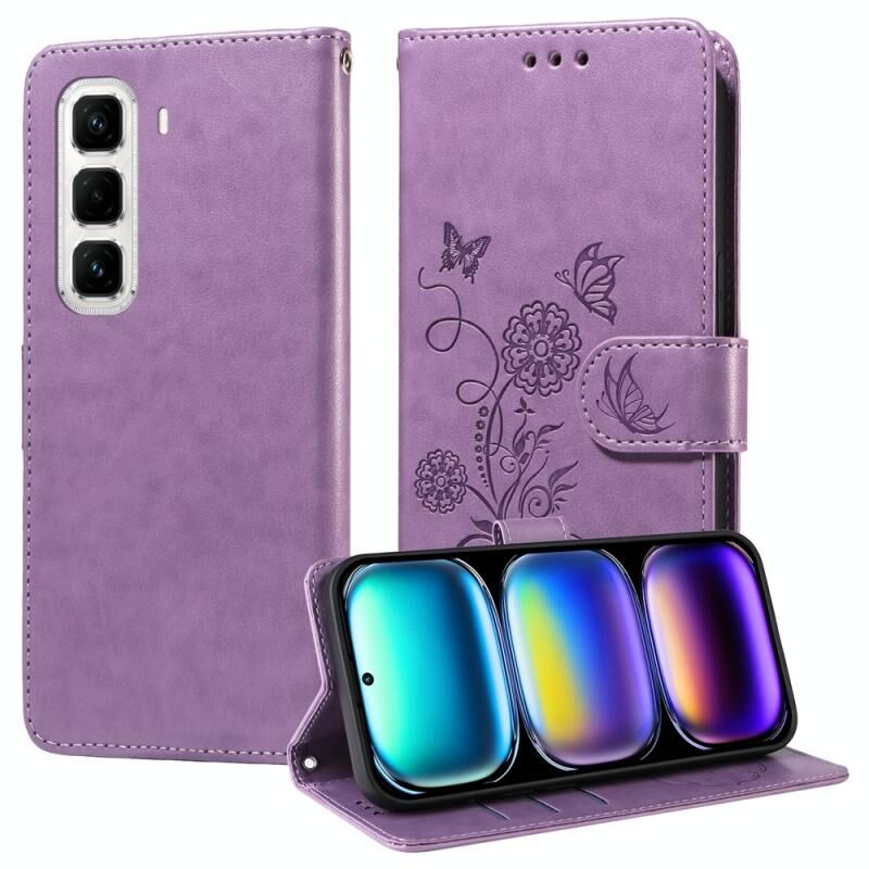 Θήκη τηλεφώνου από δέρμα με ανάγλυφα λουλούδια πεταλούδας για Infinix Hot 50 Pro+ 4G (Μωβ)