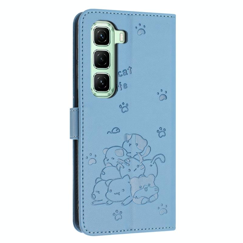 For Infinix Hot 50 Pro 4G Embossed Kitten Phone Leather Case with Lanyard(Blue)