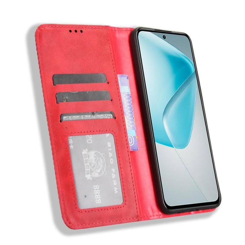 Για Infinix Hot 50 Pro 4G μαγνητική πόρπη ρετρό υφή δερμάτινη θήκη τηλεφώνου (κόκκινο)