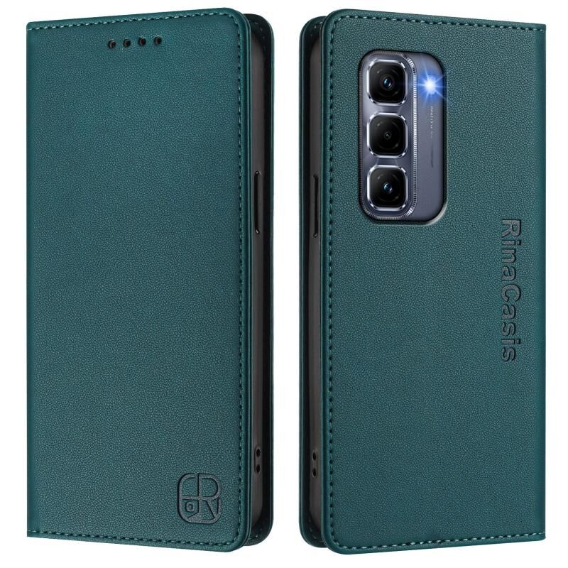 Θήκη τηλεφώνου δερμάτινη με μαγνητική απορρόφηση και διπλή πτύχωση για Infinix Hot 50 Pro+ 4G RC01 (Σκούρο πράσινο)