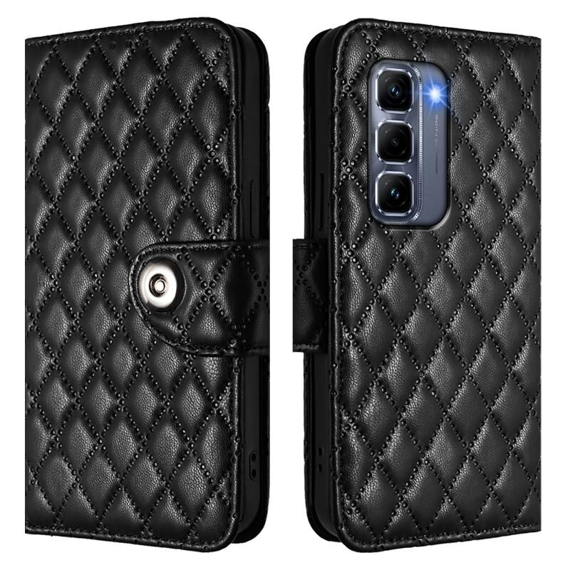 Για το Infinix Hot 50 Pro+ 4G Rhombic Texture Flip δερμάτινη θήκη τηλεφώνου με κορδόνι (μαύρο)
