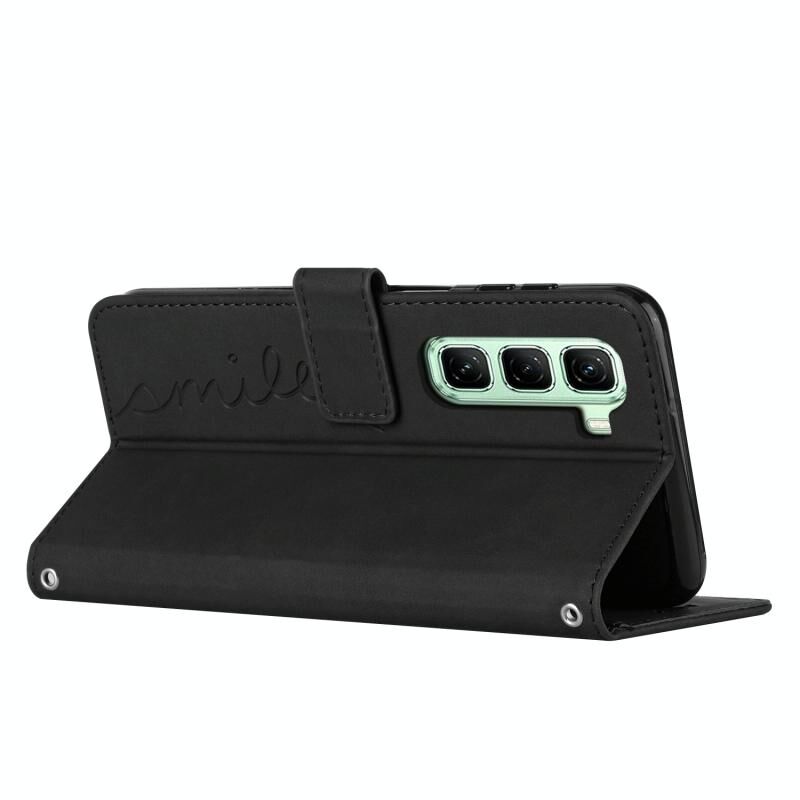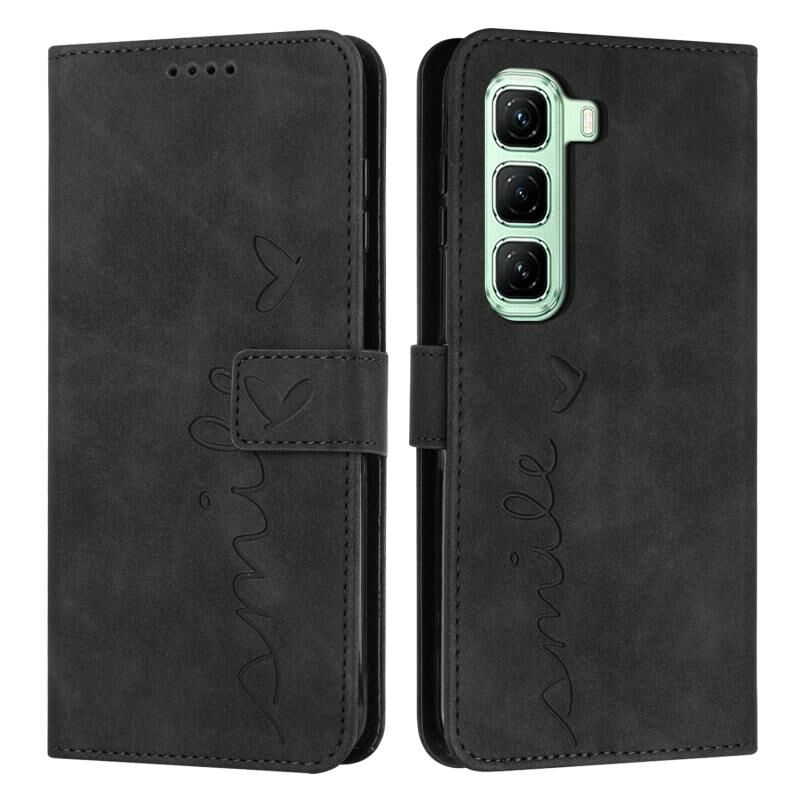 Θήκη τηλεφώνου από δέρμα με ανάγλυφο σχέδιο καρδιάς για Infinix Hot 50 Pro 4G, με αίσθηση δέρματος και μακρύ κορδόνι (Μαύρο)