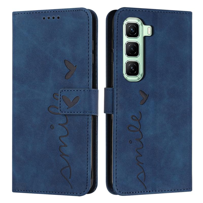 For Infinix Hot 50 Pro+ 4G Skin Feel Heart Embossed Leather Phone Case with Long Lanyard(Blue)