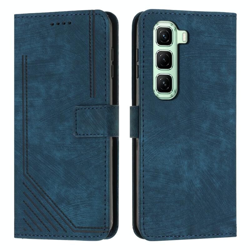Για Infinix Hot 50 Pro 4G δέρμα αίσθηση λωρίδα μοτίβο δερμάτινη θήκη τηλεφώνου με κορδόνι (μπλε)