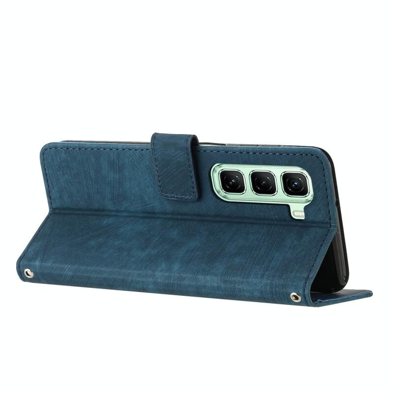 Για Infinix Hot 50 Pro + 4G δέρμα αίσθηση λωρίδα μοτίβο δερμάτινη θήκη τηλεφώνου με κορδόνι (μπλε)