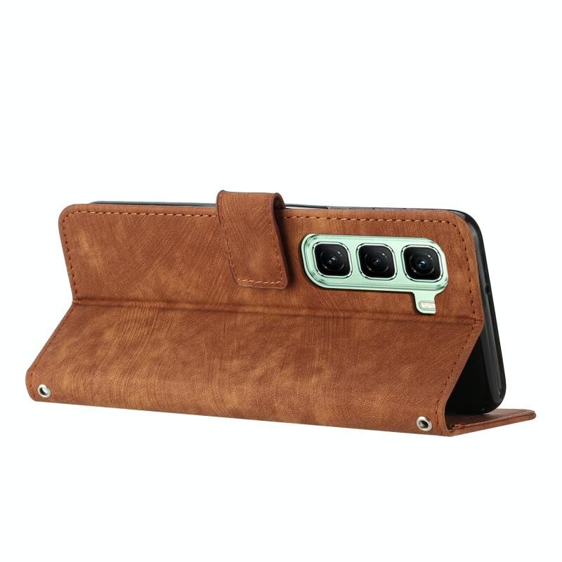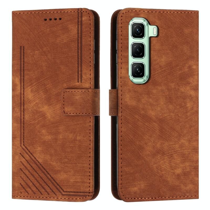 Για Infinix Hot 50 Pro + 4G δέρμα αίσθηση λωρίδα μοτίβο δερμάτινη θήκη τηλεφώνου με κορδόνι (καφέ)