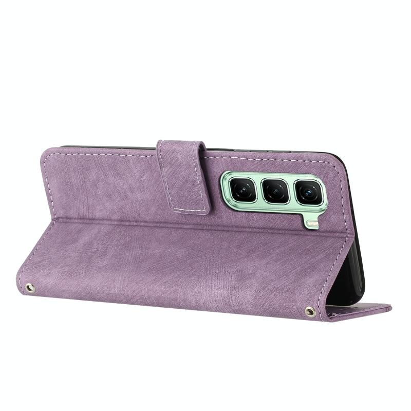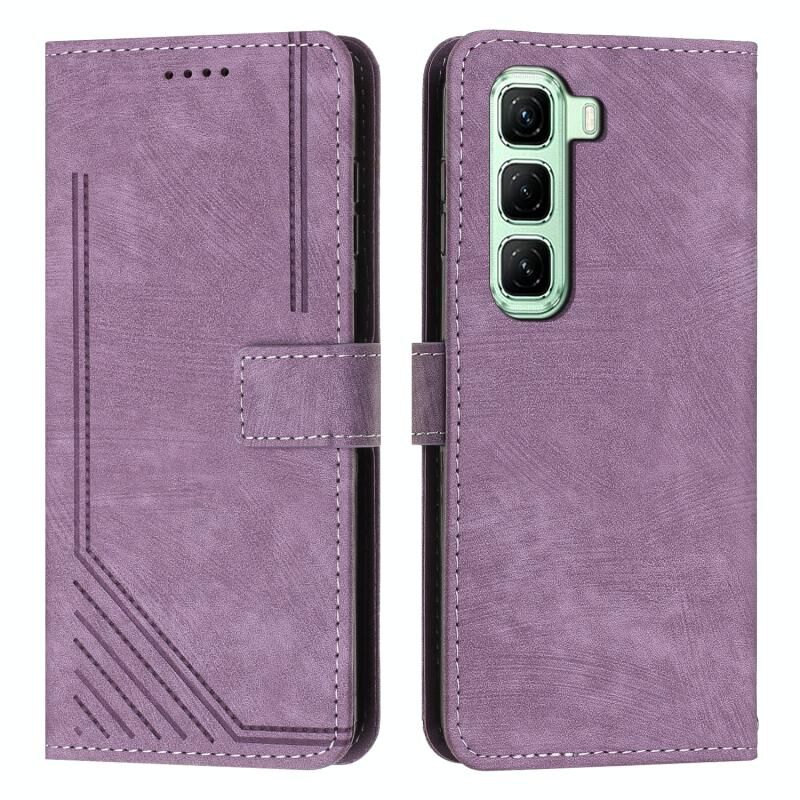Για Infinix Hot 50 Pro + 4G δέρμα αίσθηση λωρίδα μοτίβο δερμάτινη θήκη τηλεφώνου με κορδόνι (μωβ)