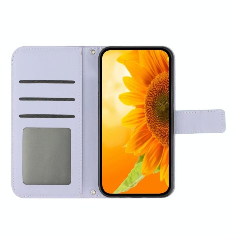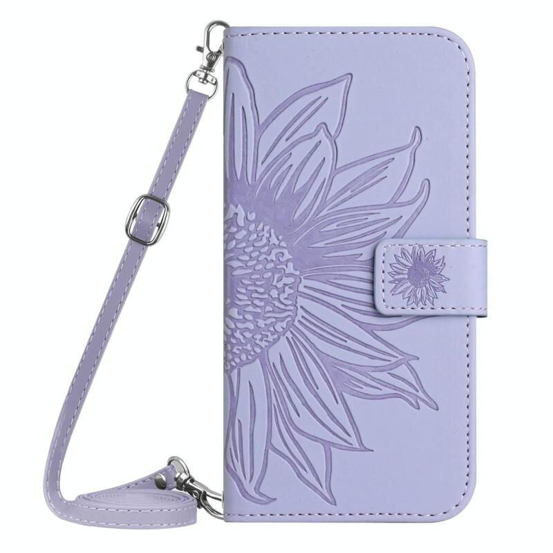 Θήκη τηλεφώνου από δέρμα με σχέδιο λουλουδιού ηλιοτρόπιου, ανάγλυφη, τύπου flip, για Infinix Hot 50 Pro 4G με κορδόνι (Κόκκινο)
