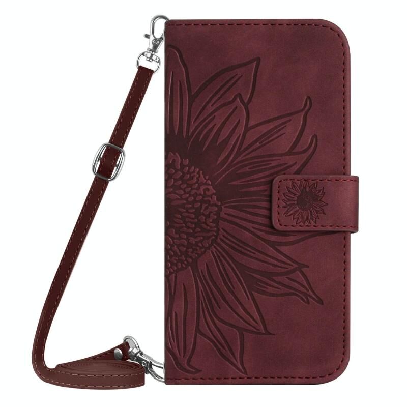 Θήκη τηλεφώνου από δέρμα με σχέδιο λουλουδιού ηλιοτρόπιου, ανάγλυφη, τύπου flip, για Infinix Hot 50 Pro 4G με κορδόνι (Κόκκινο)