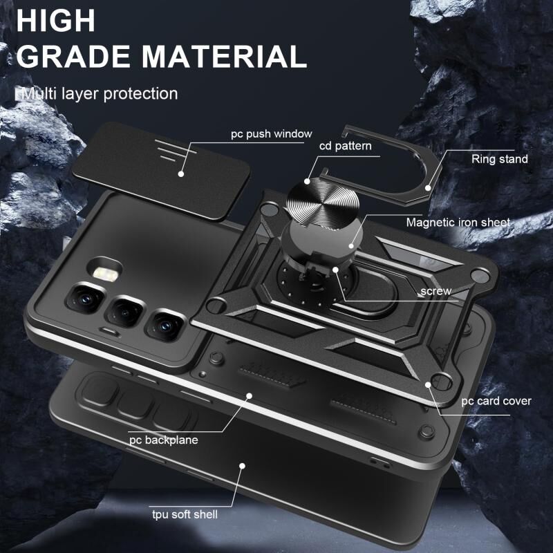 Για το Infinix Hot 50 Pro 4G συρόμενη κάμερα κάλυψης Σχεδιασμός TPU + PC τηλέφωνο υπόθεση (Μαύρο)