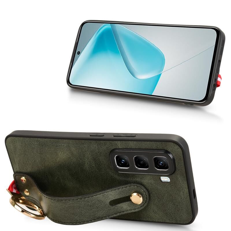 Για το Infinix Hot 50 Pro 4G X6881 Θήκη τηλεφώνου με δερμάτινη επένδυση για τον καρπό (πράσινο)
