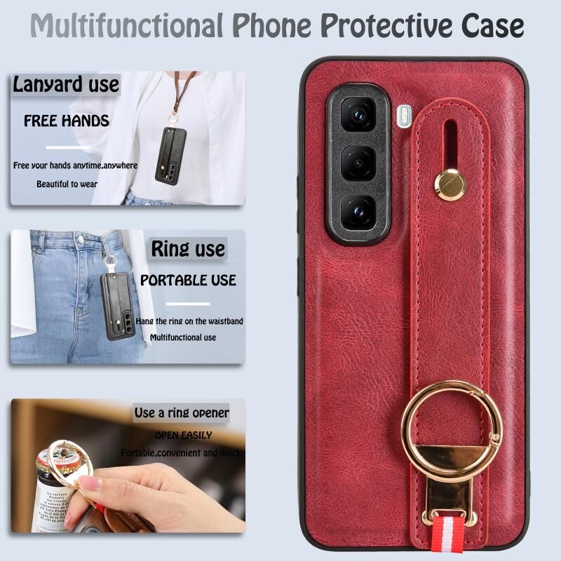 Για το Infinix Hot 50 Pro 4G X6881 Θήκη τηλεφώνου με δερμάτινη επένδυση για τον καρπό (κόκκινο)