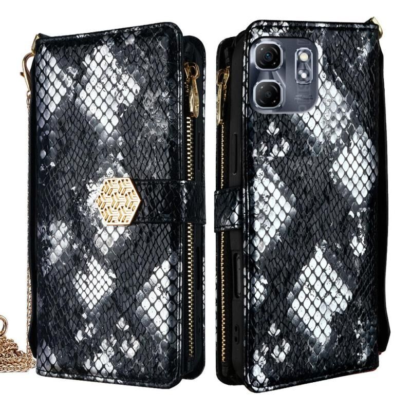 For Infinix Hot 50i 4G Crossbody Handle Snake Texture Leather Phone Case(Black)