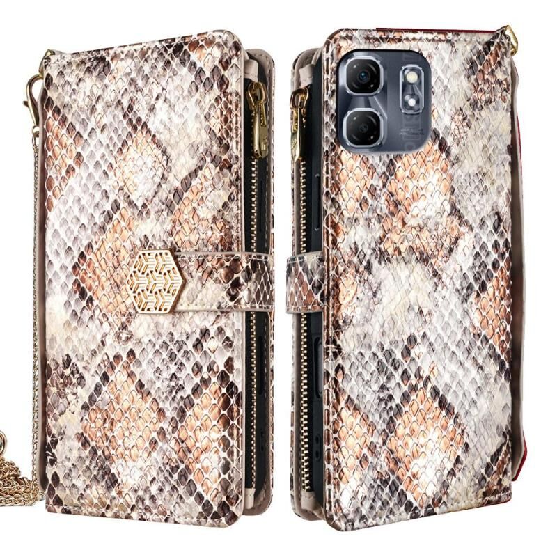 For Infinix Hot 50i 4G Crossbody Handle Snake Texture Leather Phone Case(White)