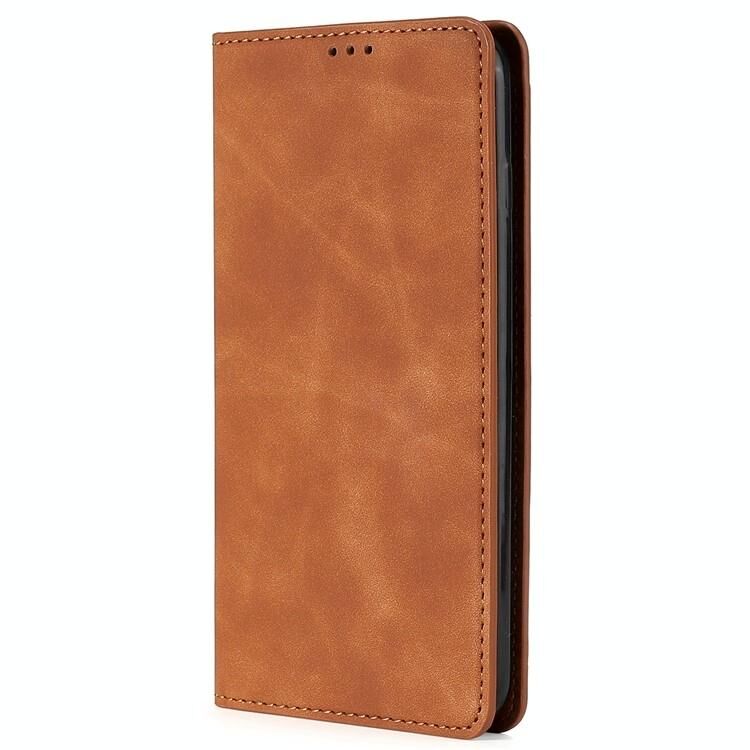 Για το Infinix Hot 50i 4G Skin Feel μαγνητική δερμάτινη θήκη τηλεφώνου (ανοιχτό καφέ)