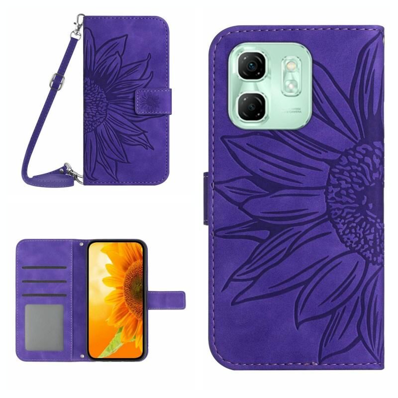 Θήκη τηλεφώνου από δέρμα με σχέδιο λουλουδιών και ανάγλυφη υφή για Infinix Hot 50i 4G, με λουρί (Κόκκινο)