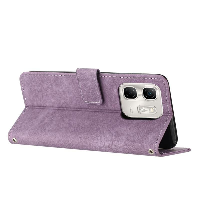 Για Infinix Hot 50i δέρμα αίσθηση λωρίδα μοτίβο δερμάτινη θήκη τηλεφώνου με κορδόνι (μωβ)
