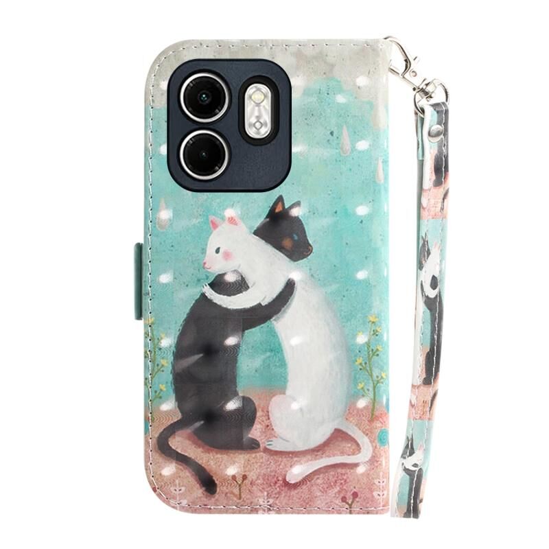 Θήκη τηλεφώνου δερμάτινη, οριζόντια, αναδιπλούμενη, με έγχρωμο 3D σχέδιο για Infinix Hot 50i / Smart 9 (Μαύρη Λευκή Γάτα)