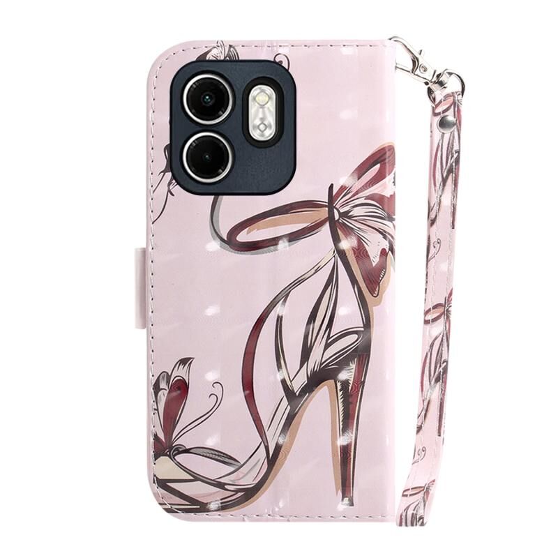 Θήκη τηλεφώνου δερμάτινη, οριζόντια, αναδιπλούμενη, 3D με χρώματα για Infinix Hot 50i / Smart 9 (Πεταλούδα με ψηλοτάκουνα)