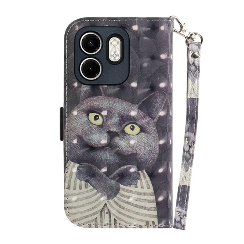 Θήκη τηλεφώνου δερμάτινη, οριζόντια, αναδιπλούμενη, με τρισδιάστατο χρωματιστό σχέδιο για Infinix Hot 50i / Smart 9 (Αγκαλιάζουσα Γάτα)