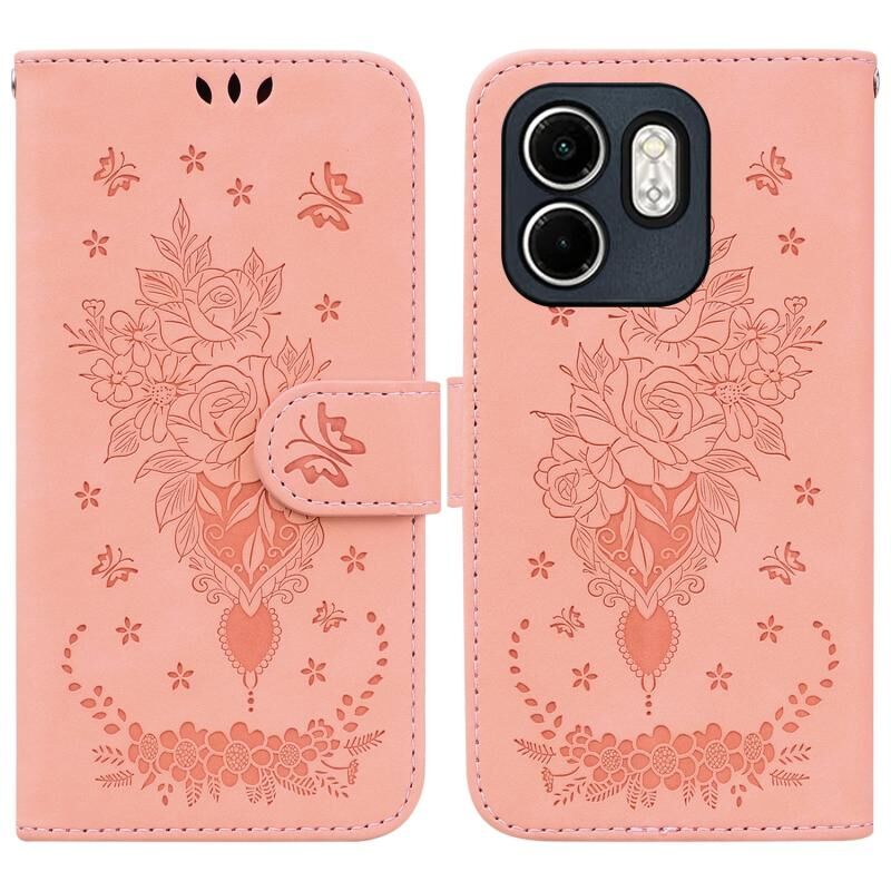 Θήκη τηλεφώνου από ανάγλυφο δέρμα για Infinix Hot 50i / Smart 9 Butterfly Rose (Μπλε)