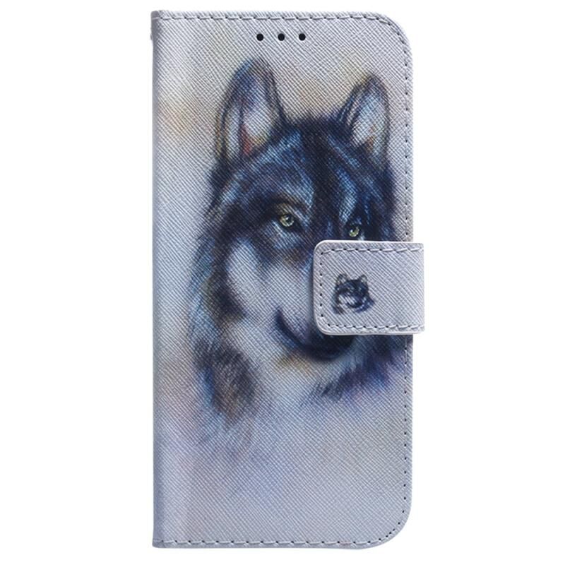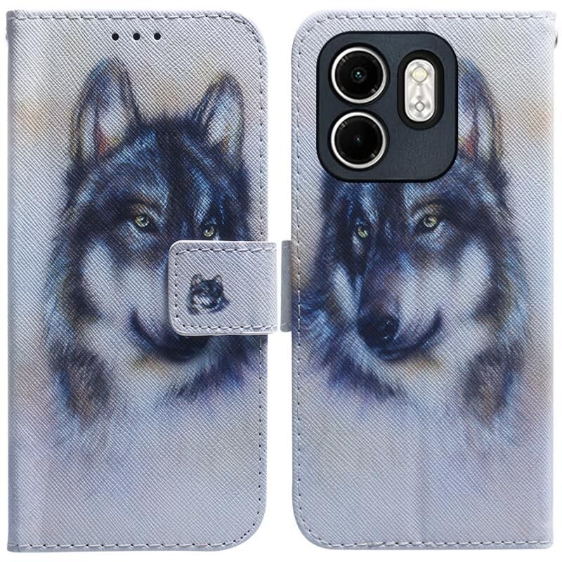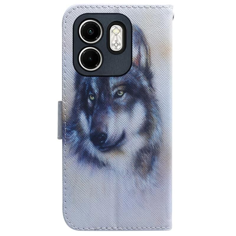 Θήκη τηλεφώνου από δέρμα με σχέδιο και αναδιπλούμενο καπάκι για Infinix Hot 50i / Smart 9 (Λευκός Λύκος)