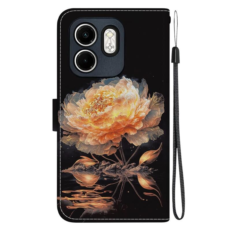 Θήκη τηλεφώνου δερμάτινη με σχέδιο και κρυσταλλική υφή για Infinix Hot 50i / Smart 9 (Μωβ Παιώνια)