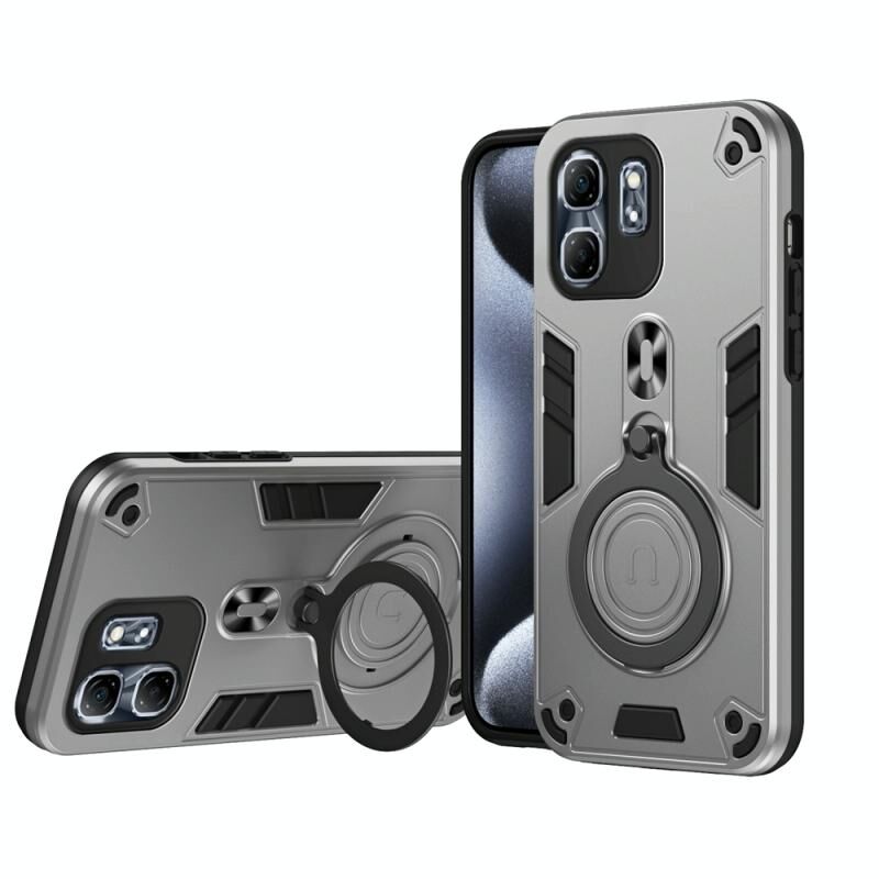 Για Infinix Hot 50i / Smart 9 μεταλλικό δαχτυλίδι 360 μοίρες περιστρεφόμενη κάτοχος PC υβριδικό TPU τηλέφωνο υπόθεση (ασημί γκρι)