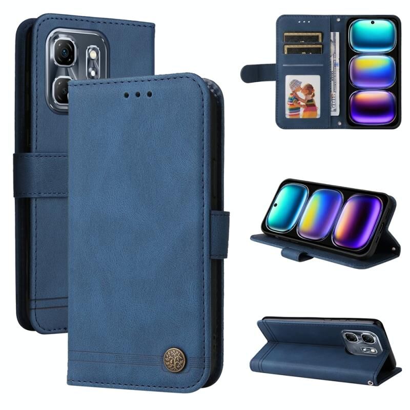 Για το Infinix Hot 50i / Smart 9 δέρμα αίσθηση ζωής δέντρο μεταλλικό κουμπί δέρμα τηλέφωνο υπόθεση (μπλε)