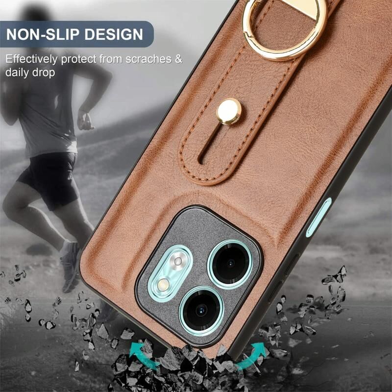 Για Infinix HOT 50i X6531 Wristband δέρμα πίσω τηλέφωνο υπόθεση (καφέ)