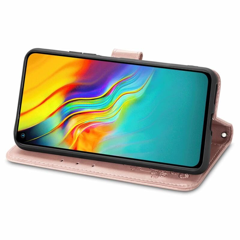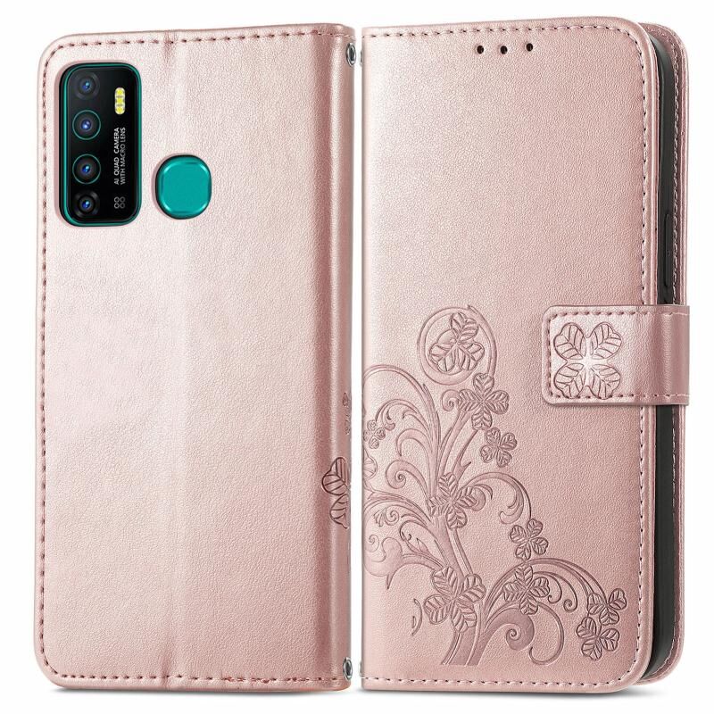 Για το Infinix Hot 9 Four-leaf Clasp ανάγλυφο αγκράφα κινητό τηλέφωνο προστασία δερμάτινη θήκη με κορδόνι & υποδοχή κάρτας & πορτοφόλι & λειτουργία βραχίονα (Rose Gold)