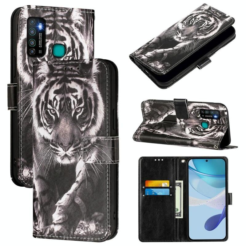 For Infinix Hot 9 / Hot 9 Pro Colored Drawing Pattern Plain Weave Leather Phone Case(Black And White Tiger)