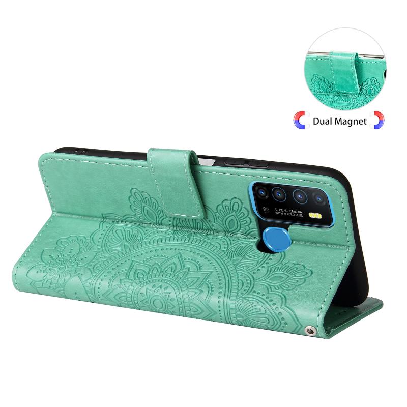 For Infinix Hot 9 / Note 7 Lite 7-petal Flowers Embossing Pattern Horizontal Flip PU Leather Case with Holder & Card Slots & Wallet & Photo Frame(Green)