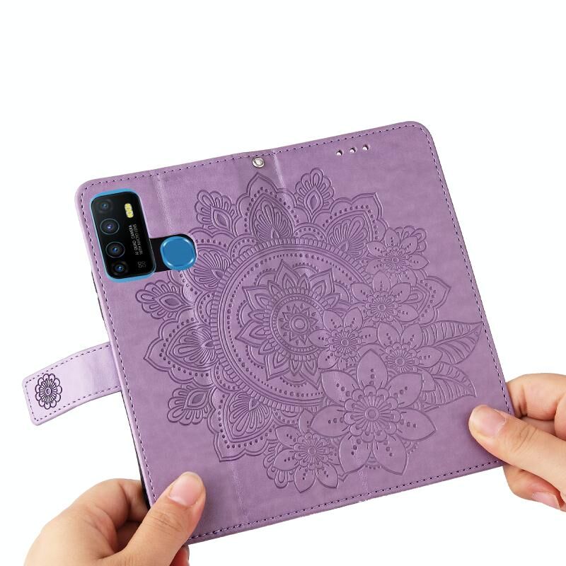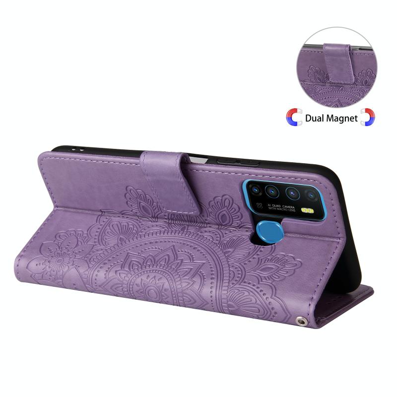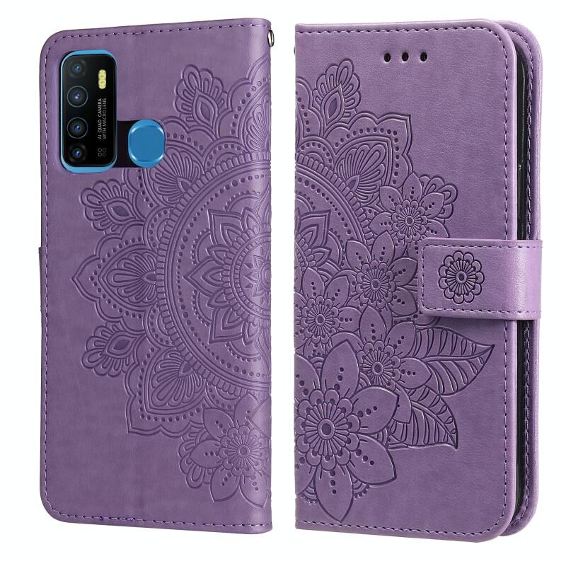 For Infinix Hot 9 / Note 7 Lite 7-petal Flowers Embossing Pattern Horizontal Flip PU Leather Case with Holder & Card Slots & Wallet & Photo Frame(Light Purple)