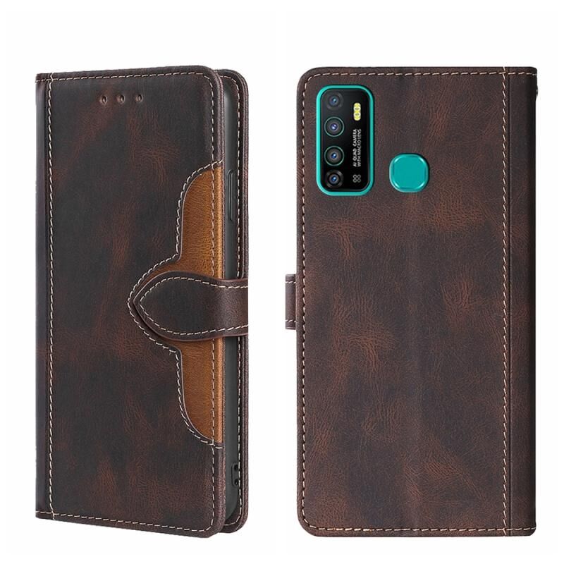 Για Infinix Hot 9 / Σημείωση 7 Lite X655C δέρμα αίσθηση άχυρο καπέλο μαγνητική πόρπη δερμάτινη υπόθεση τηλεφώνου (καφέ)
