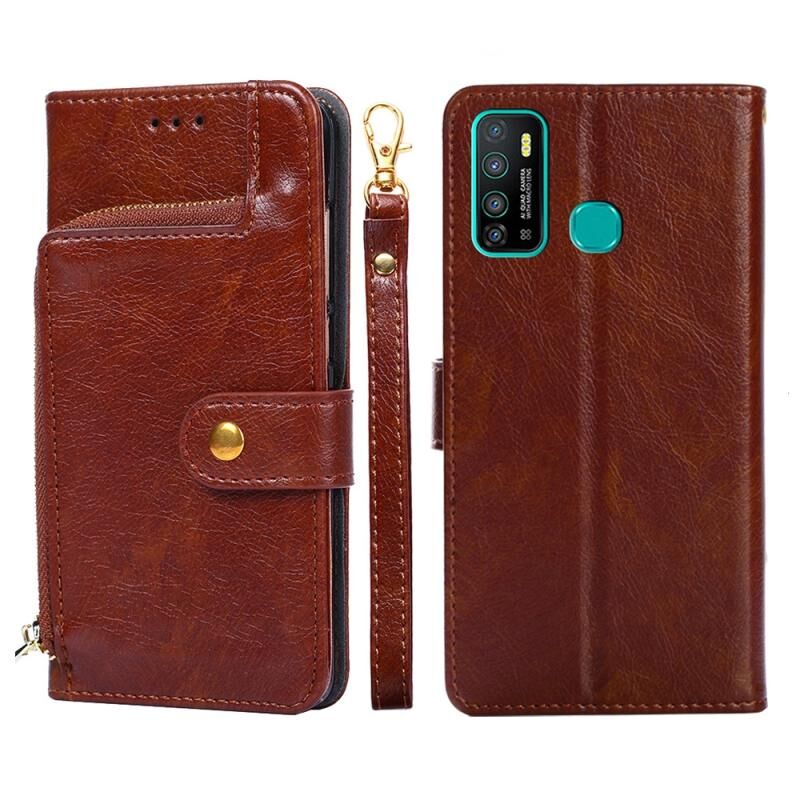 Για Infinix Hot 9 / Note 7 Lite / X655C φερμουάρ τσάντα δερμάτινη θήκη τηλεφώνου (καφέ)