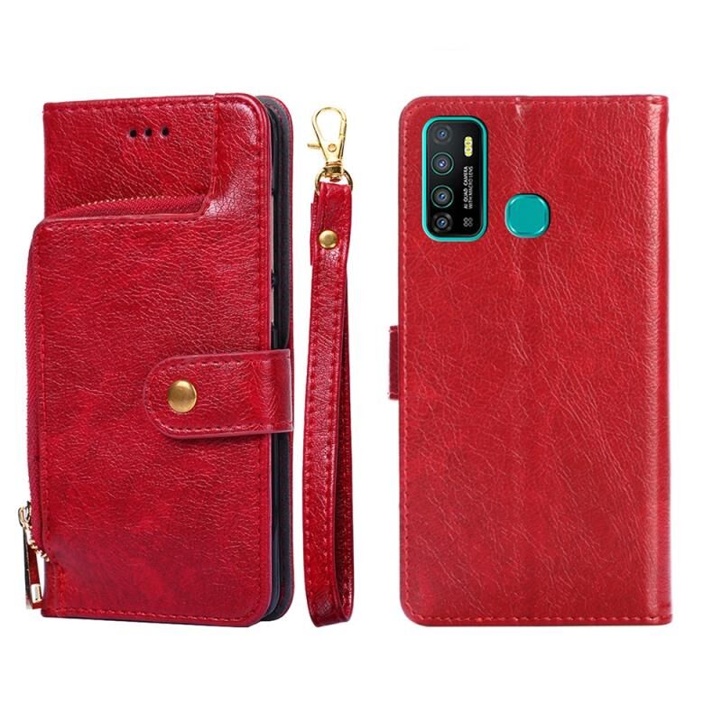 Για Infinix Hot 9 / Note 7 Lite / X655C φερμουάρ τσάντα δερμάτινη θήκη τηλεφώνου (κόκκινο)