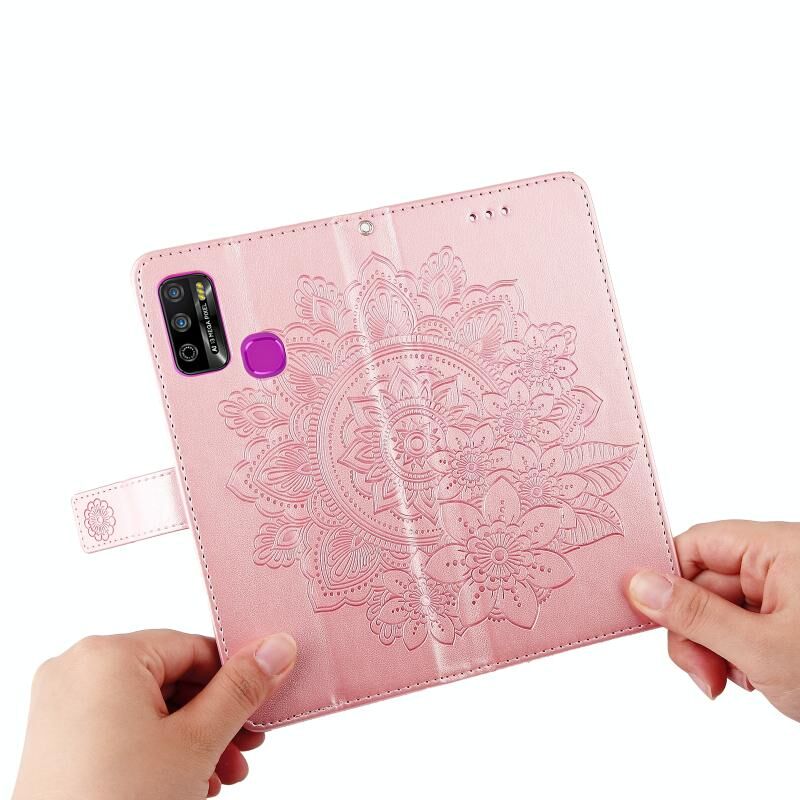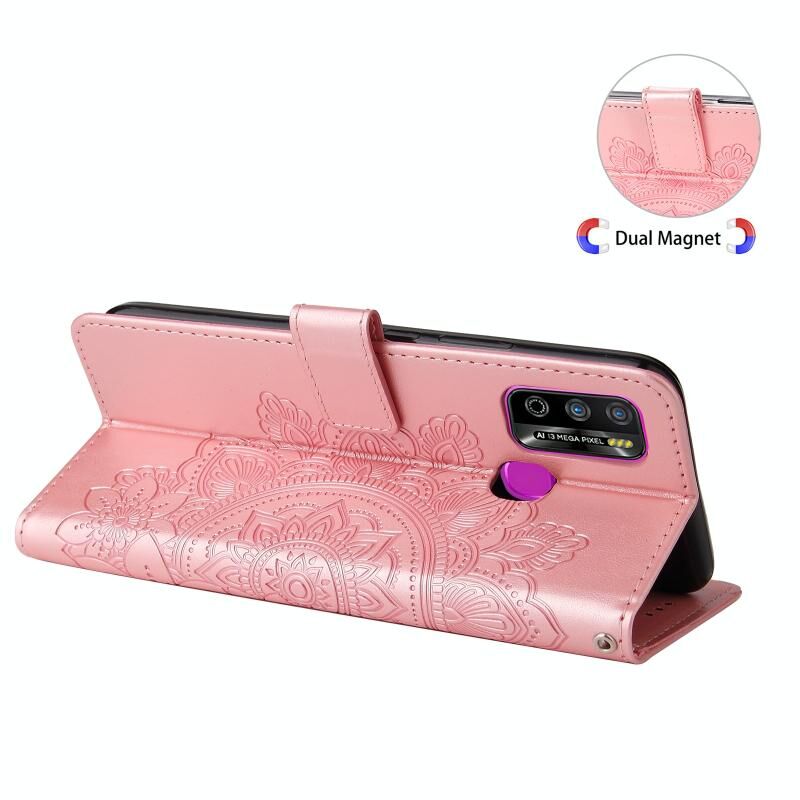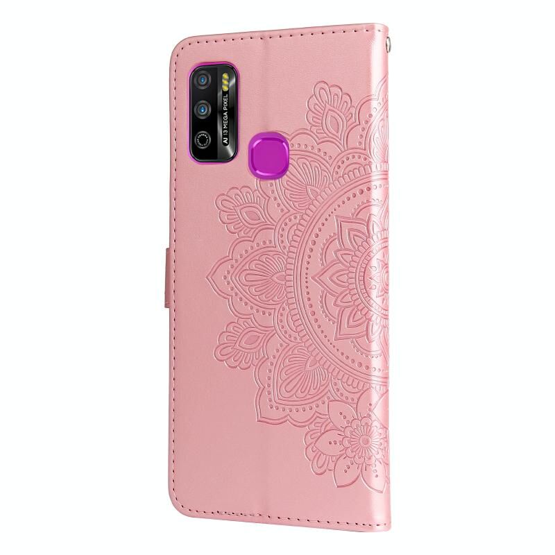 For Infinix Hot 9 Play 7-petal Flowers Embossing Pattern Horizontal Flip PU Leather Case with Holder & Card Slots & Wallet & Photo Frame(Rose Gold)