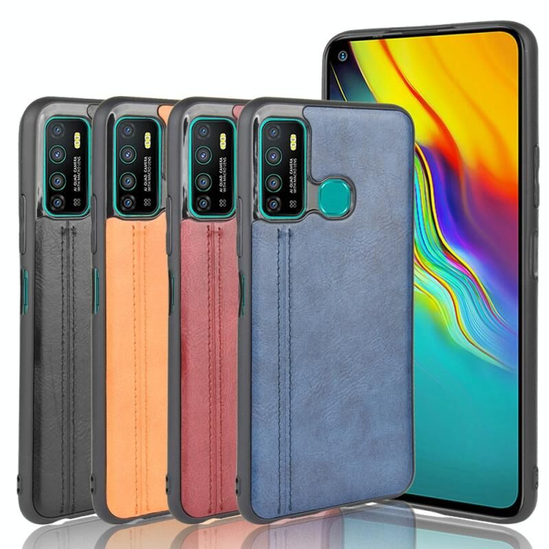 Για το Infinix Hot 9 Shockproof Ράβοντας μοτίβο αγελάδας δέρμα υφή PC + PU + TPU υπόθεση (μαύρο) (idewei)
