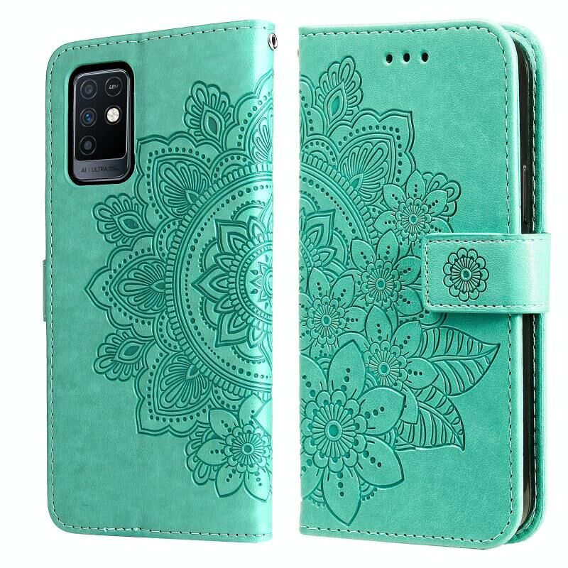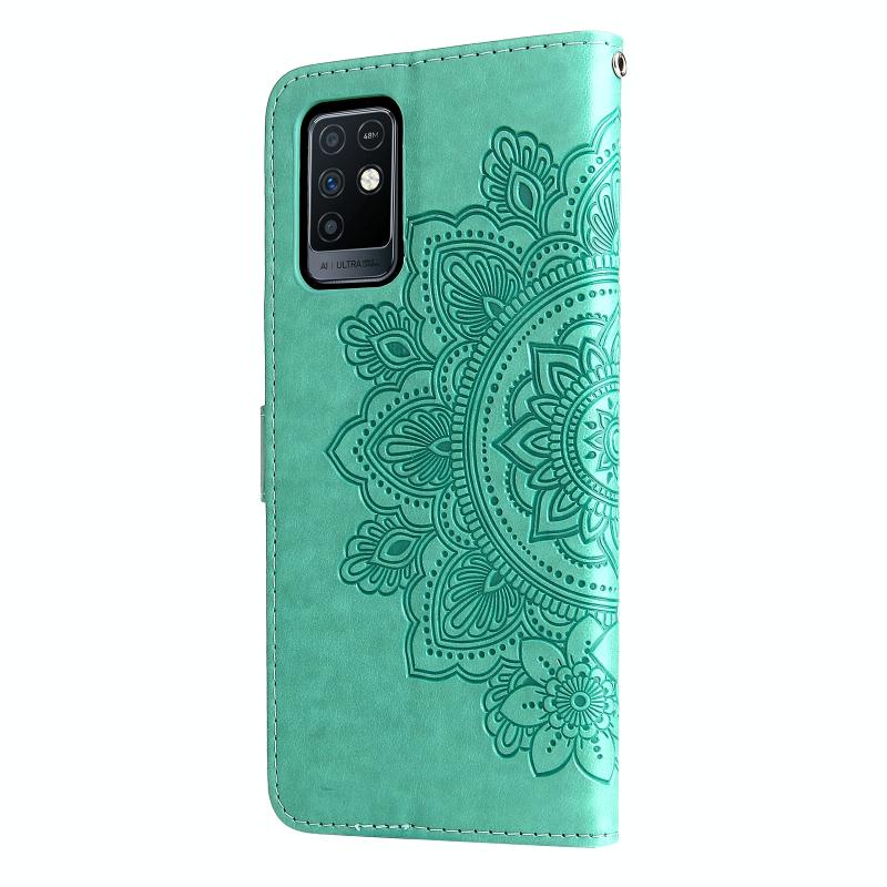 For Infinix Note 10 7-petal Flowers Embossing Pattern Horizontal Flip PU Leather Case with Holder & Card Slots & Wallet & Photo Frame(Green)