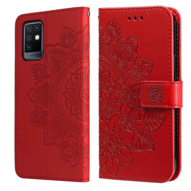 For Infinix Note 10 7-petal Flowers Embossing Pattern Horizontal Flip PU Leather Case with Holder & Card Slots & Wallet & Photo Frame(Red)