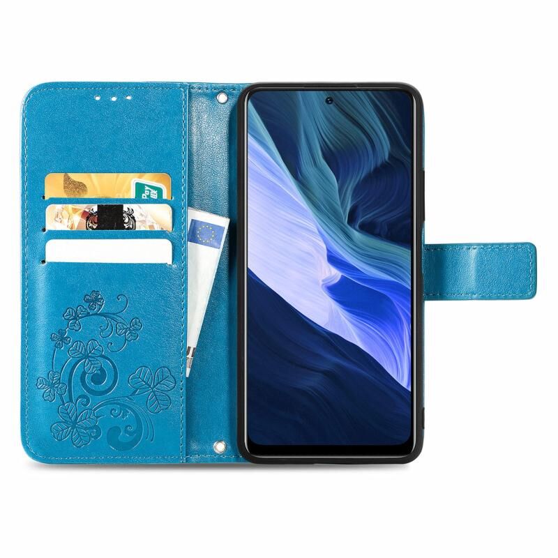 Για Infinix Note 10 Four-leaf Clasp ανάγλυφη αγκράφα Κινητό τηλέφωνο προστασία δερμάτινη θήκη με κορδόνι & υποδοχή για κάρτες & πορτοφόλι & βραχίονα λειτουργία (μπλε)