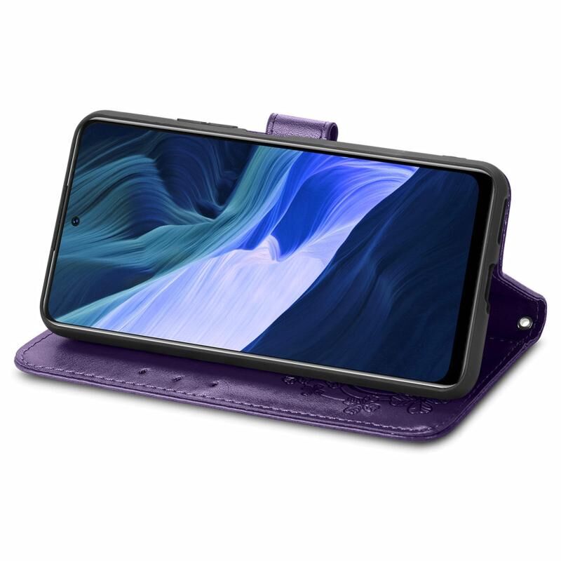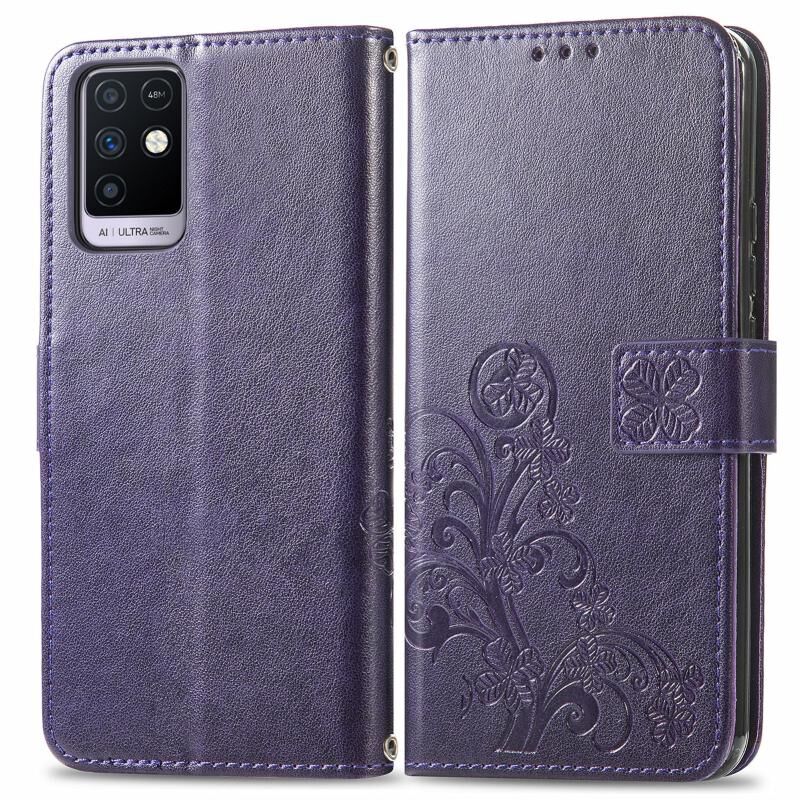 Για Infinix Note 10 Four-leaf Clasp ανάγλυφη αγκράφα Κινητό τηλέφωνο προστασία δερμάτινη θήκη με κορδόνι & υποδοχή για κάρτες & πορτοφόλι & βραχίονα λειτουργία (μωβ)