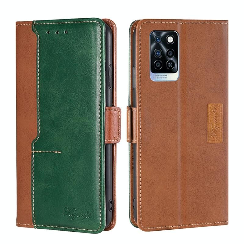 Για Infinix Σημείωση 10 Pro αντίθεση χρώμα πλευρά πόρπη δερμάτινη θήκη τηλεφώνου υπόθεση (ανοιχτό καφέ + πράσινο)