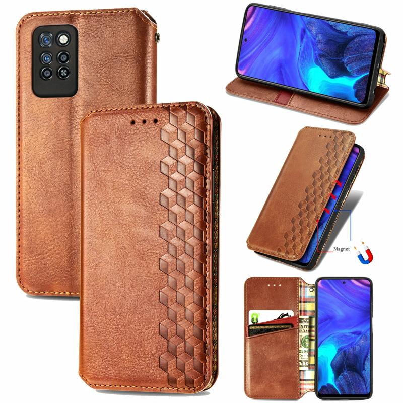 For Infinix Note 10 Pro Cubic Grid Pressed Horizontal Flip Magnetic PU Leather Case with Holder & Card Slots & Wallet(Brown)
