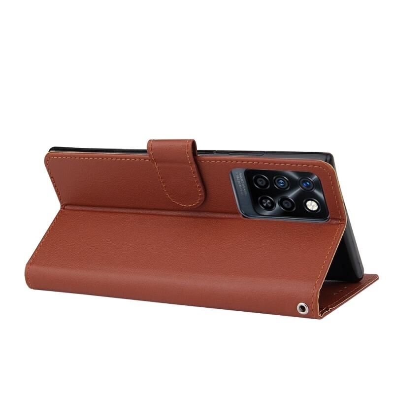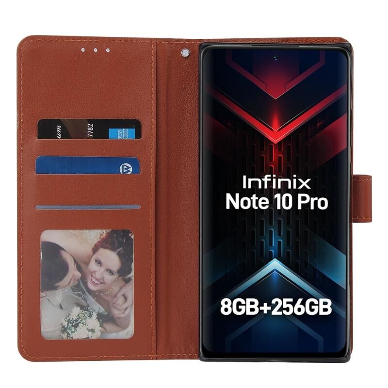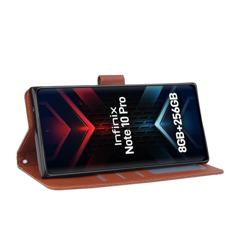 Για το Infinix Note 10 Pro Πολυλειτουργική οριζόντια δερμάτινη θήκη με τρεις υποδοχές για κάρτες (καφέ)