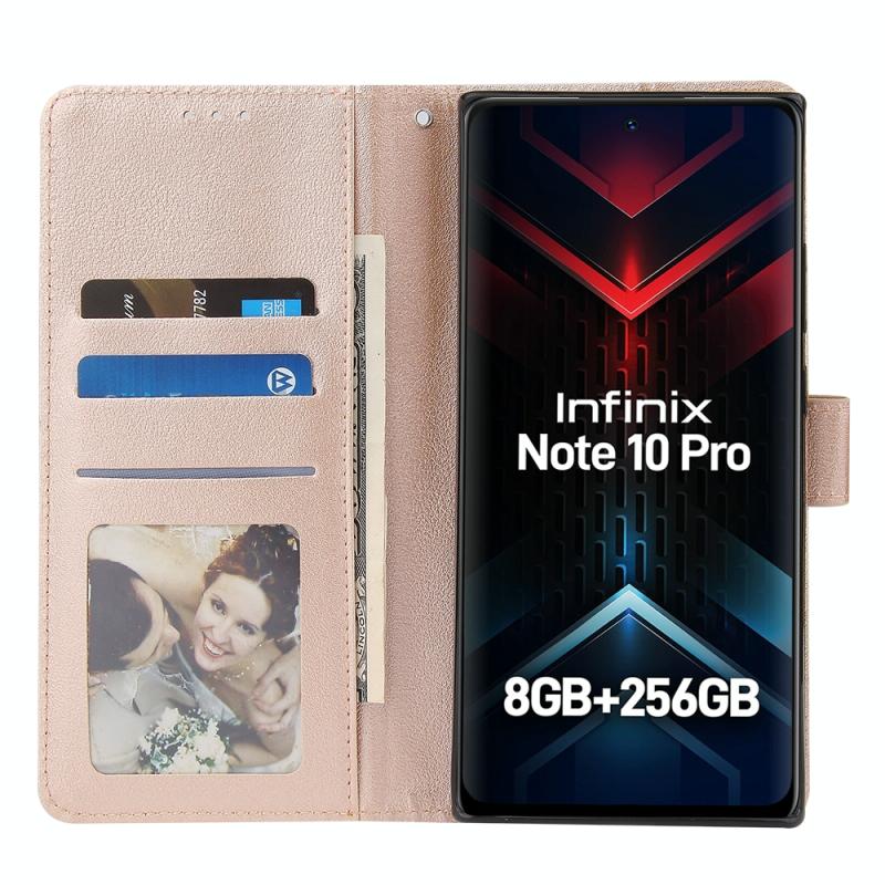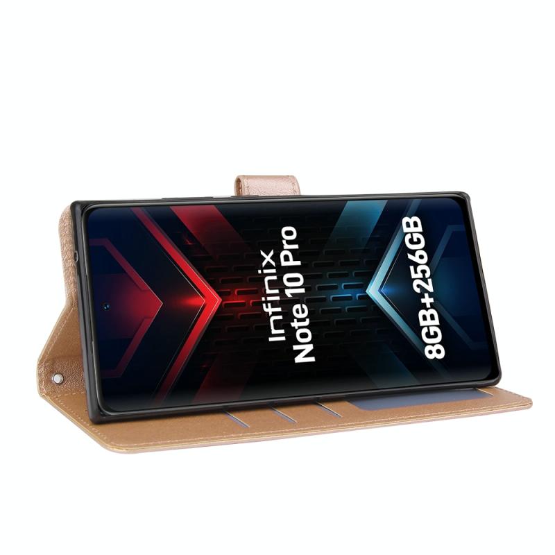 Θήκη δέρματος οριζόντιας αναδίπλωσης, πολυλειτουργική για Infinix Note 10 Pro με τρεις υποδοχές καρτών (Χρυσό)