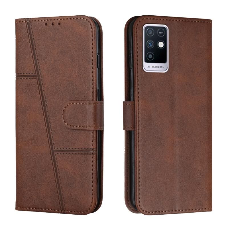 Για Infinix Σημείωση 10 ραφή μοσχάρι υφή πόρπη δέρμα τηλέφωνο υπόθεση (καφέ)